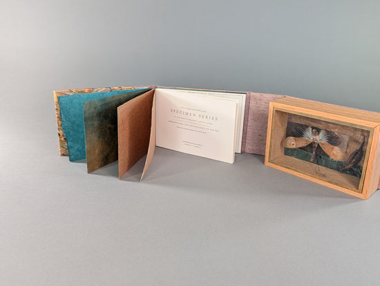 My sculptural artist books within the Specimen Series are deeply rooted in natural forms and the traces left behind by plant and animal life. Many of these works draw on the history and visual sensibility of cabinets of curiosities, creating a dialogue between observation, collection, and artistic interpretation.