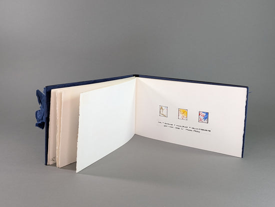 False Accordion Binding with rives BFK paper with hand painted symbols and monoprinted images tipped in