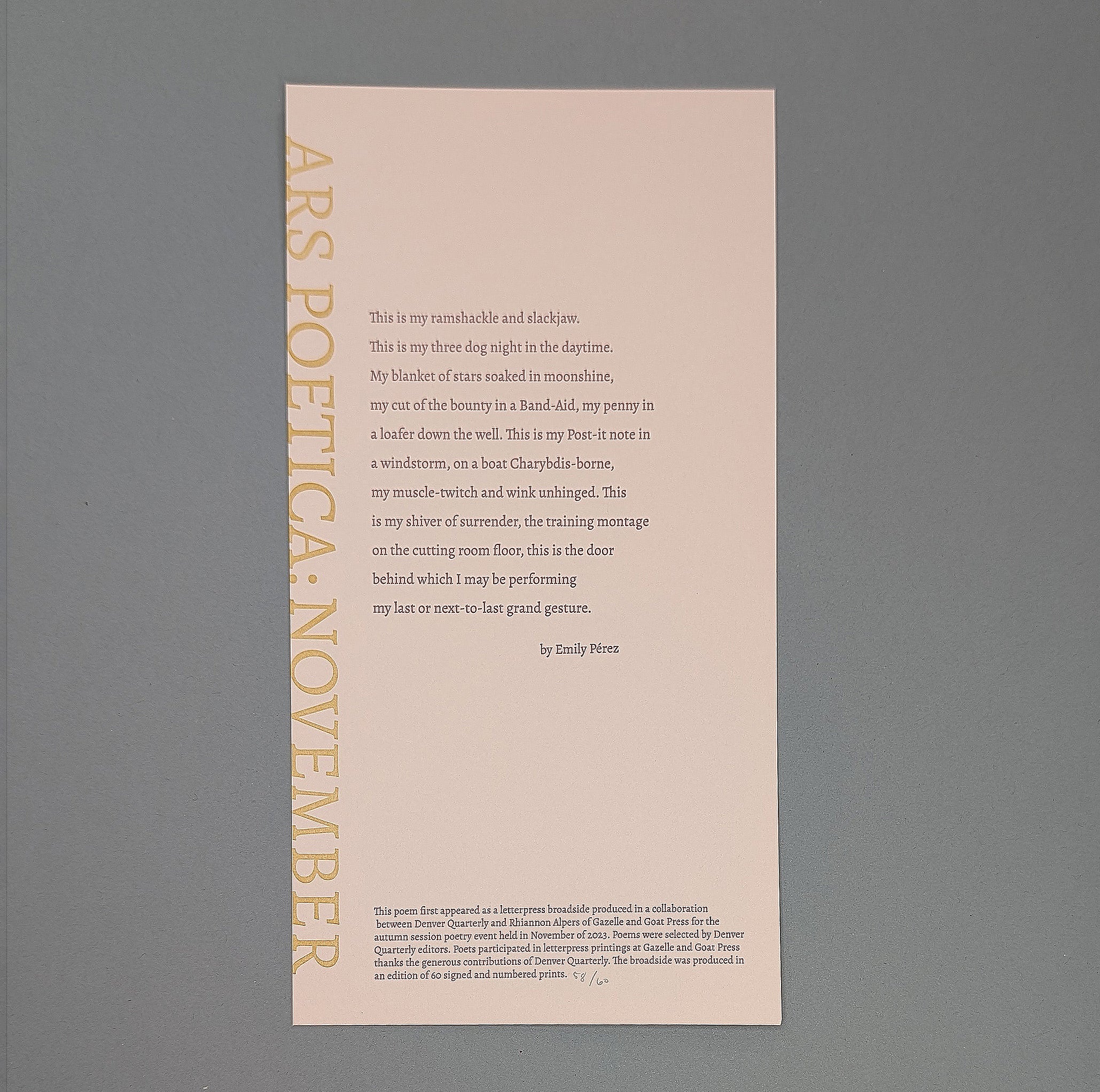Emily Perez | Denver Quarterly Letterpress Broadside